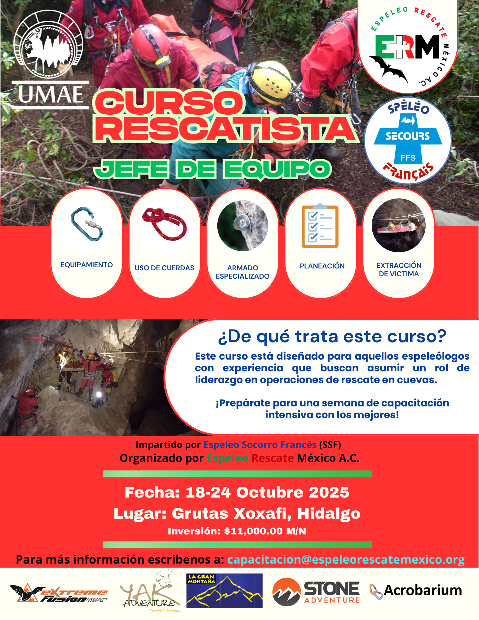 Para más información escríbenos al correo: capacitacion@espeleorescatemexico.org